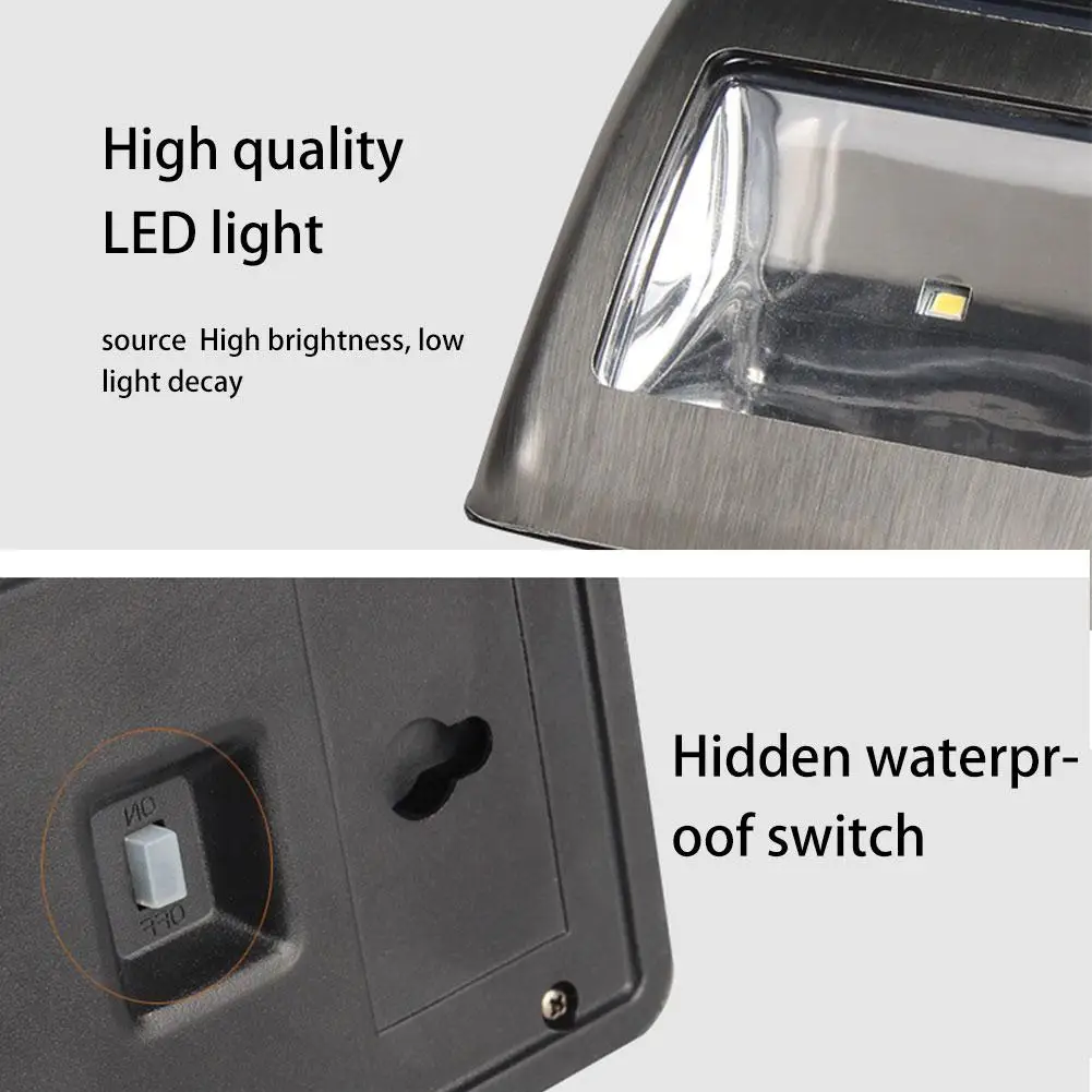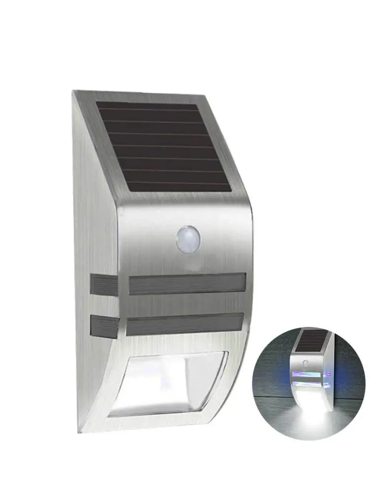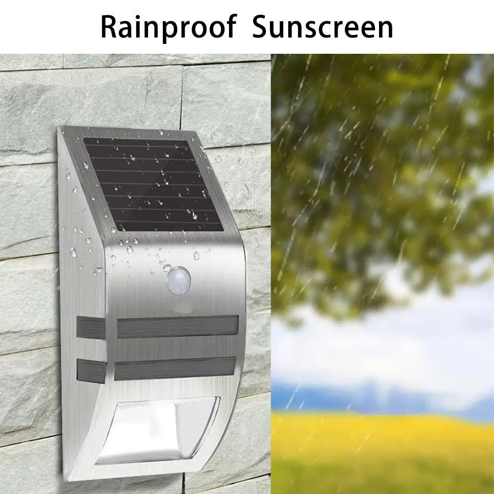 New Solar Wall Lamp Stainless Steel Human Body Sensor Light 2 LED Waterproof Light for Outdoors Vil